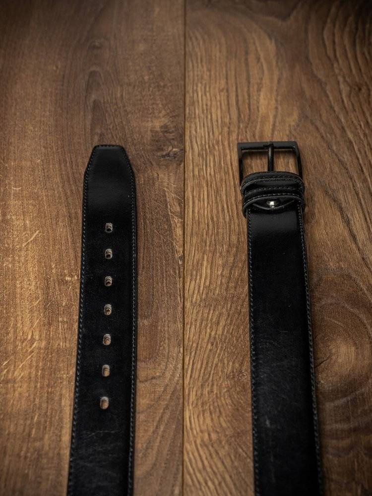 Nowoczesny, oryginalny pasek wykonany z wysokiej jakości skóry naturalnej w kolorze czarnym, z klasyczną prostą metalową klamrą. Ciekawy styl urozmaici każdą stylizację.