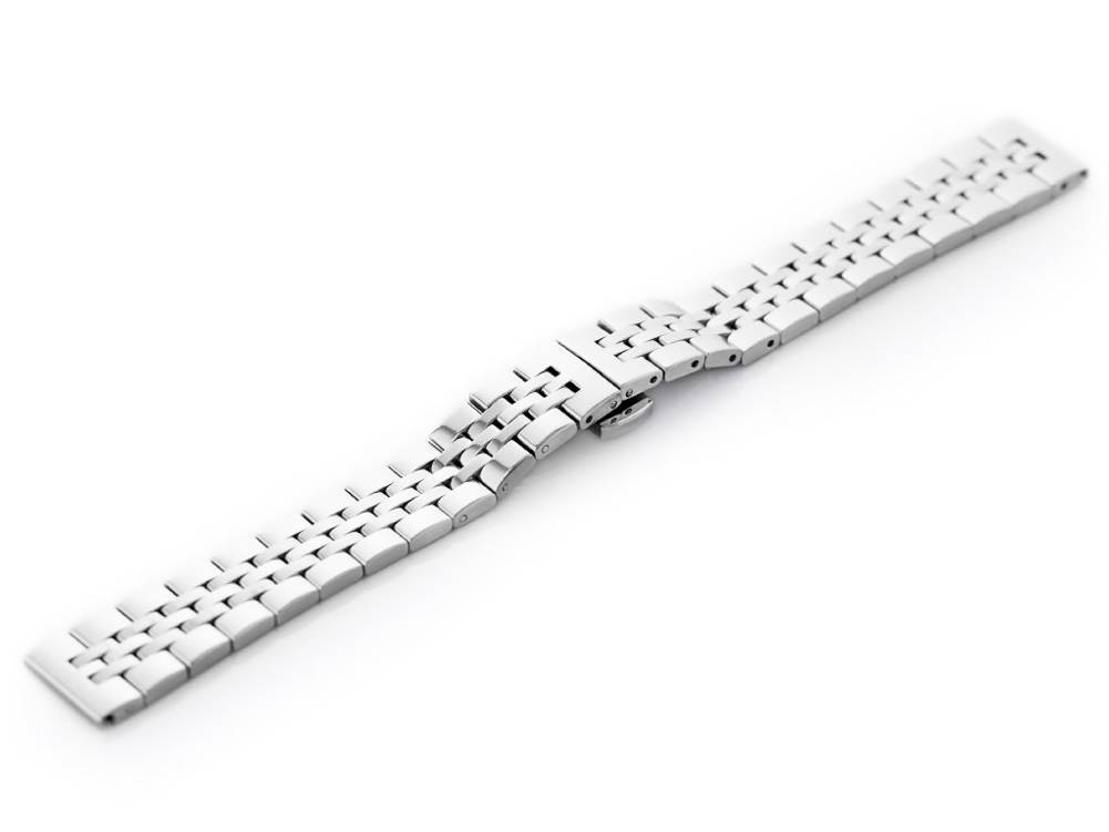 Stalowa bransoletka z zapięciem motylkowym do zegarka wysokiej jakości w kolorze srebrnym.