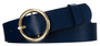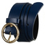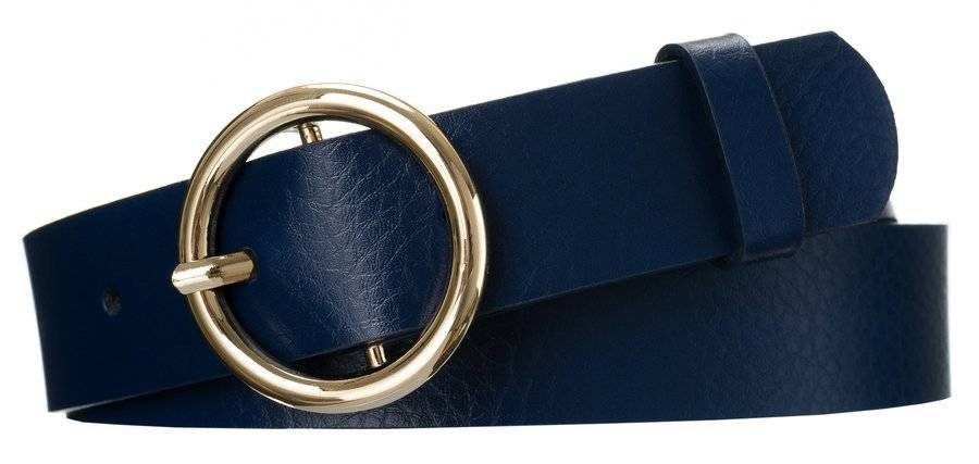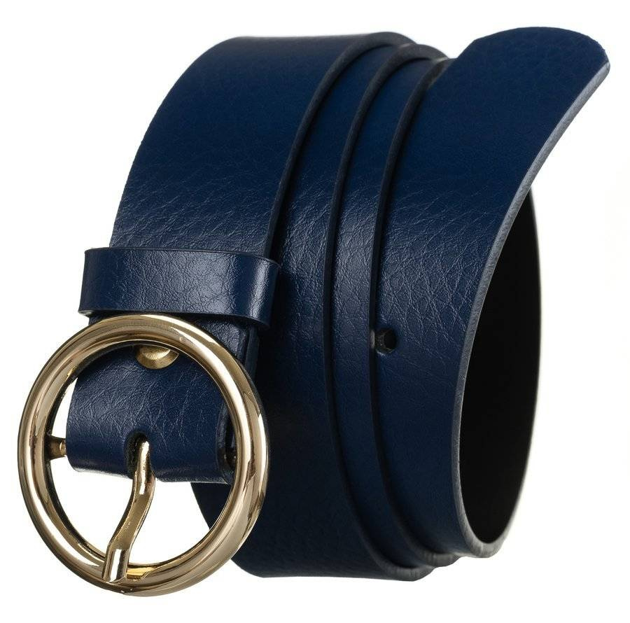 Połyskujący, skórzany pasek damski ze złotą, okrągłą klamrą 100cm granat