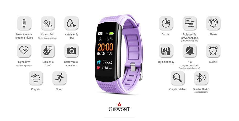 Funkcje smartband Giewont GW200