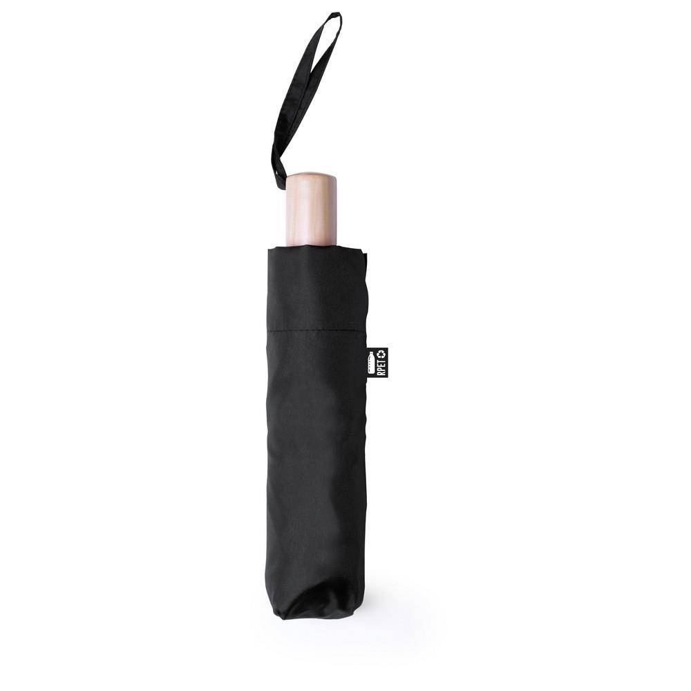Wiatroodporny parasol rPET, manualny, składany, 8 paneli, drewniana rączka, metalowa rama, zapięcie na rzep, pokrowiec w komplecie