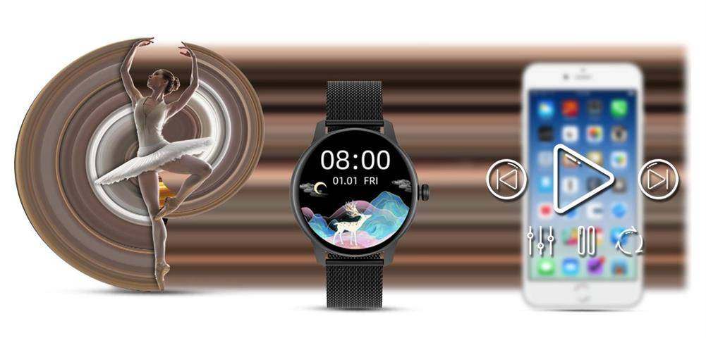 Zegarek może być używany do sterowania odtwarzaczem muzyki w telefonie komórkowym. Można go używać odtwarzania, wstrzymywania lub pomijania utworów (jest kompatybilny tylko z wbudowanym odtwarzaczem muzyki w telefonie komórkowym, może nie być kompatybilny z odtwarzaczem innych aplikacji, a głośności nie można regulować na zegarku.