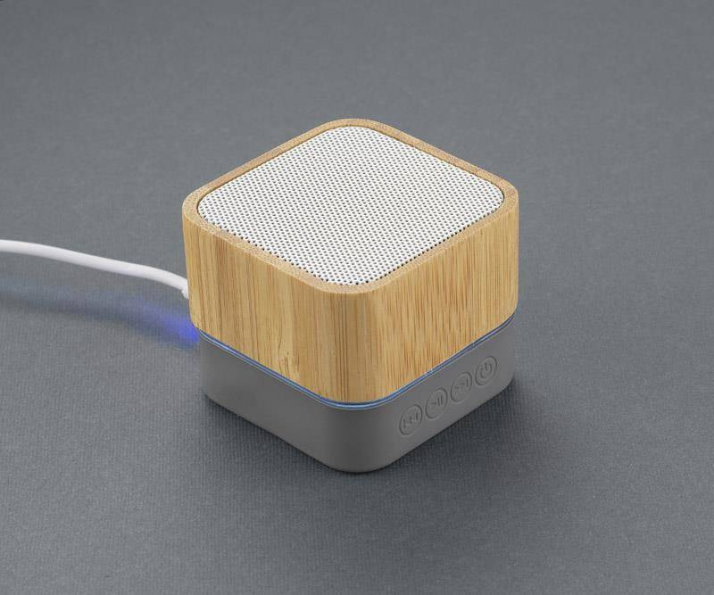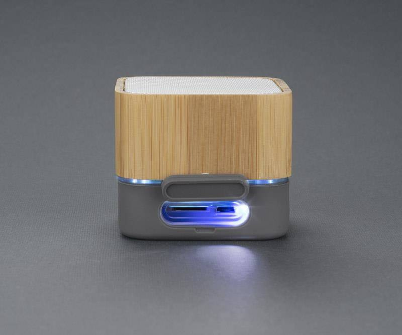 GROOVE to zgrabny i przykuwający uwagę głośnik. Charakteryzuje się ciekawą obudową, która jest wykonana z bambusa i silikonu, przy czym oba te materiały świetnie się ze sobą komponują. Głośnik wyposażony jest w wielokolorowe światło, które dodaje mu imprezowego charakteru. Odtwarzanie muzyki za pośrednictwem bluetooth (wersja 5.0) i karty micro SD. Produkt jest zgodny z odpowiednimi dyrektywami Unii Europejskiej oraz posiada znak CE. Dane techniczne: moc wyjściowa: 3W, pojemność baterii litowo-jonowej: 350mAh, czas pracy: ok. 2 godz., czas ładowania: 2,5 godz.