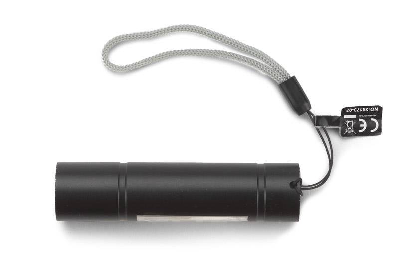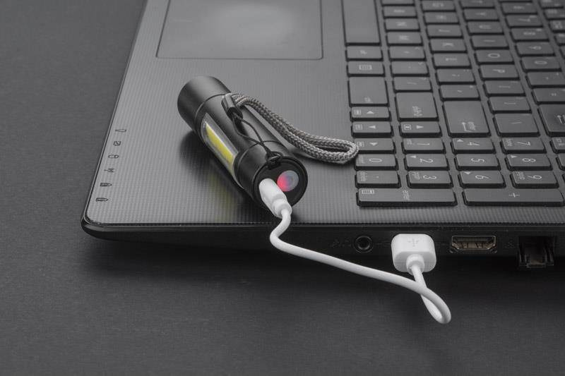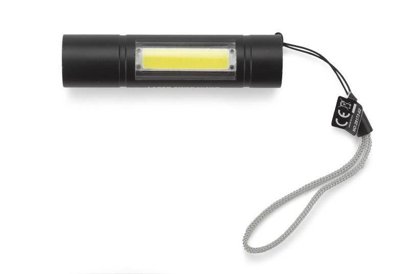 BATRI to wygodna i solidnie wykonana latarka z trzema trybami światła: ciągłe, migające i boczne COB. Wykonana z metalu. Wyposażona w smyczkę i wbudowany akumulator ładowany poprzez kabel micro USB, który znajduje się w zestawie. Moc latarki: 3W, pojemność baterii 550 mAh.
