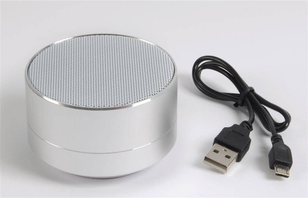Głośnik posiada kabel do ładowania, gniazdo na kartę microSD, radio FM.
