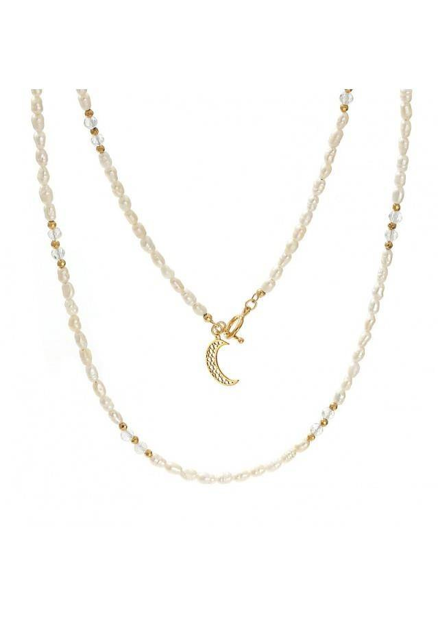 Naszyjnik wykonany ze srebra próby 925 , pozłacanego 24 karatowym, żółtym złotem Kamień: Hematyt + Kryształ górski +perła Rozmiar kamienia: 4 mm/2mm Długość :szyja: 42 cm + przedłużka do 59 cm OPAKOWANIE W CENIE