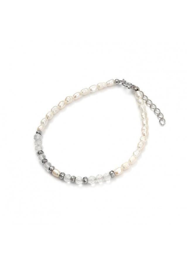 Bransoletka wykonana ze srebra próby 925 , rodowana Kamień: Hematyt + Kryształ górski +perła Rozmiar kamienia: 4 mm/2mm Długość :szyja: 17,5 cm + przedłużka