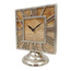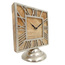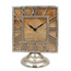 Kwadratowy zegar na posrebrzanej nóżce będzie się dobrze prezentował na biurku, komodzie lub kominku podając aktualną godzinę.