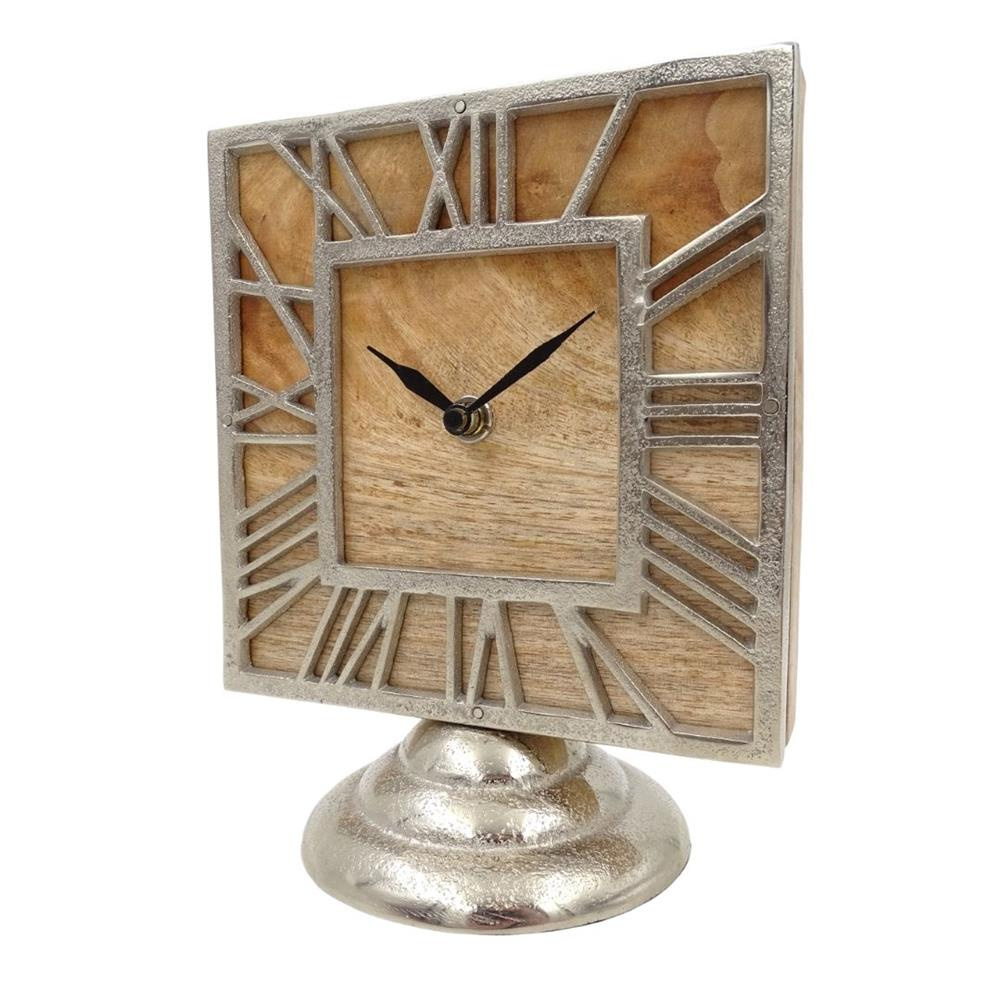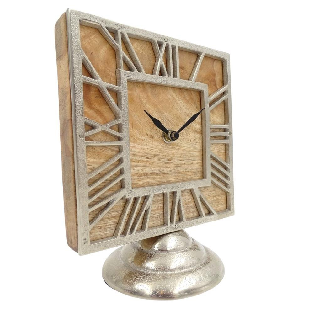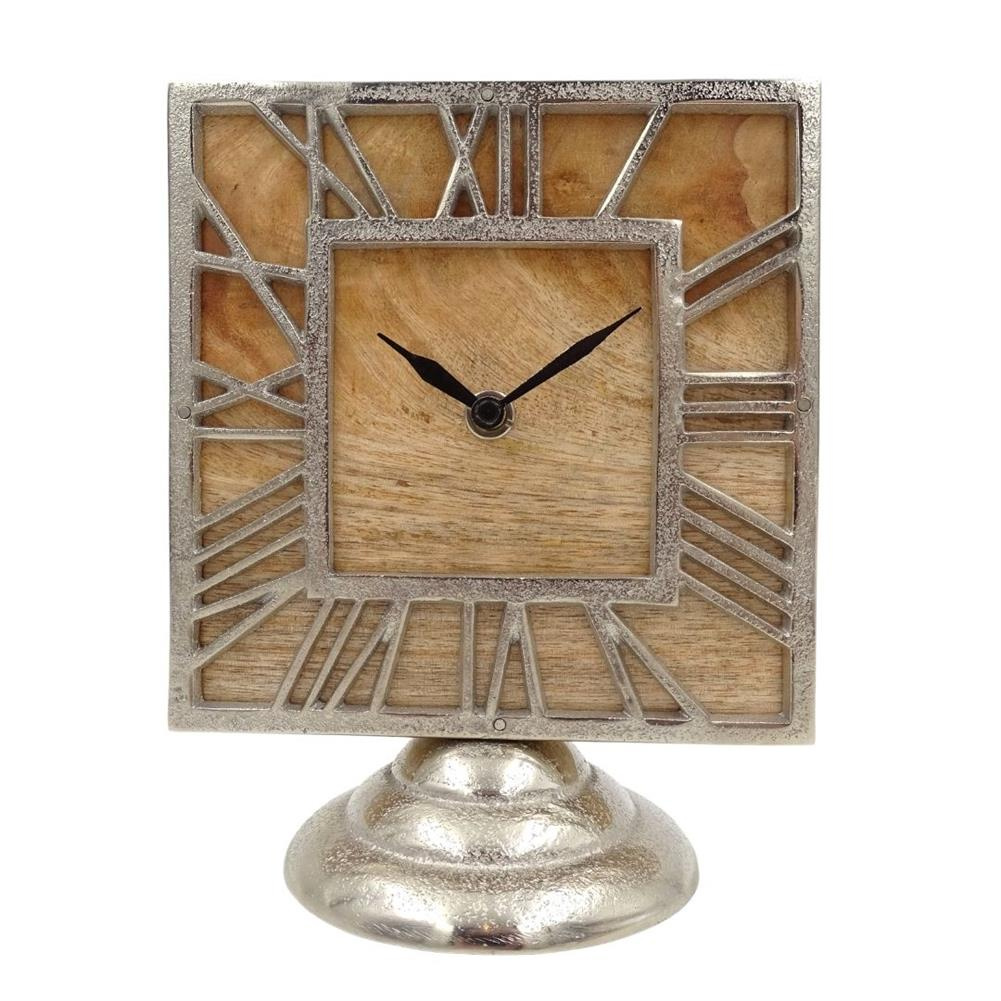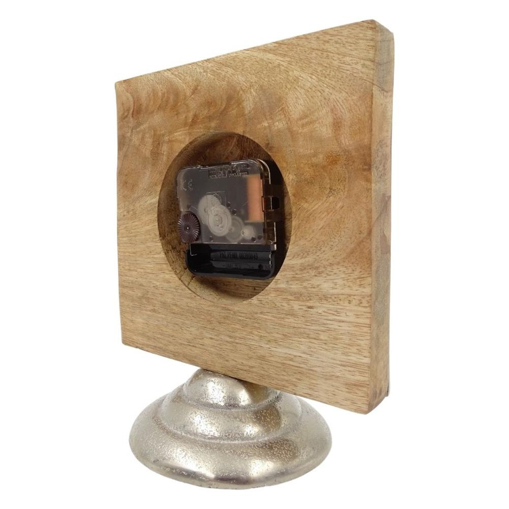 Kwadratowy Zegar na Biurko CLK-0534 to modne połączenie drewna i metalu.