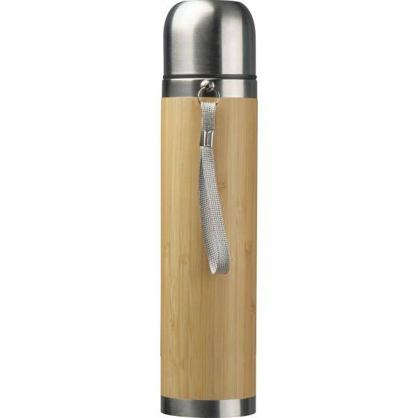 Termos o pojemności 400 ml z podwójnymi ściankami, z kubkiem do picia i paskiem do przenoszenia. Wykonany jest ze stali nierdzewnej i posiada bambusową powłokę.