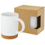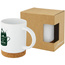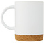 Współczesny kubek ceramiczny z korkową podstawą, która nadaje mu naturalny wygląd.