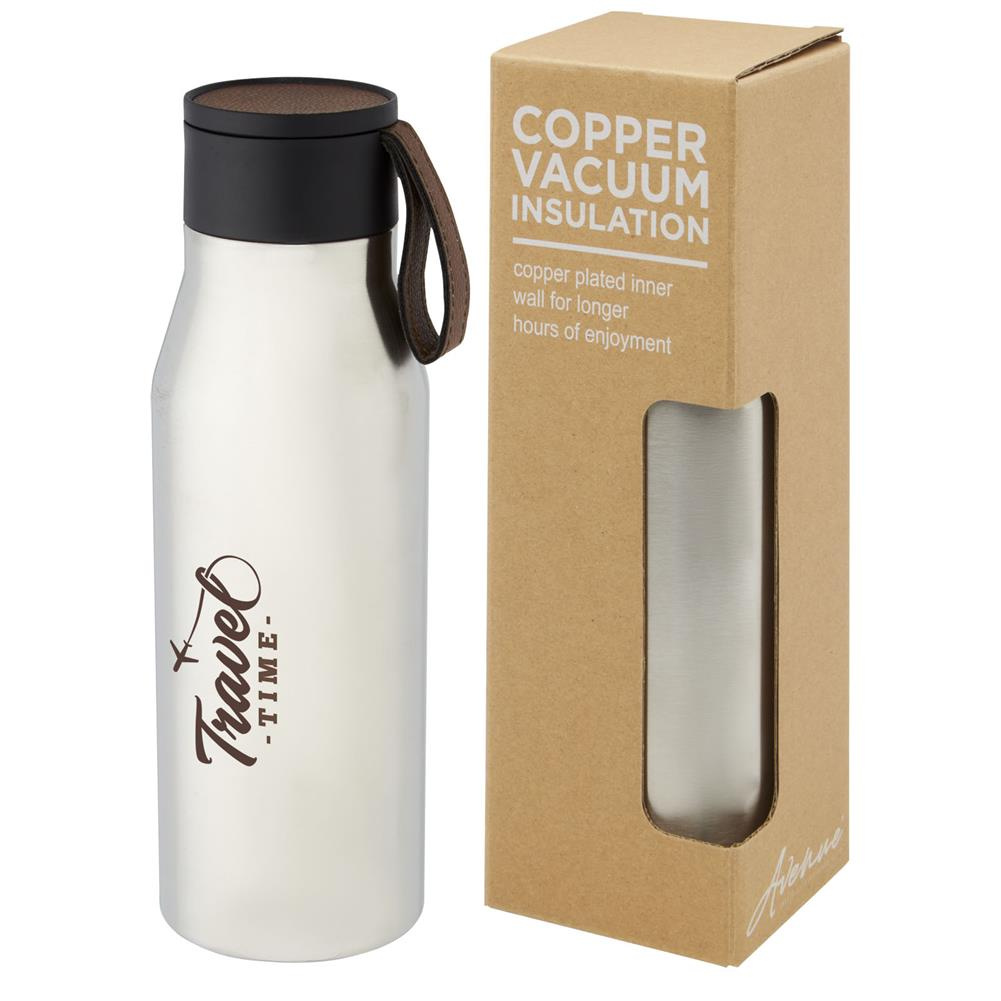 Miedziana butelka ze stali nierdzewnej z izolacją próżniową, o klasycznym i eleganckim wyglądzie.