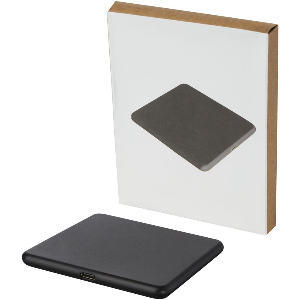 Bezprzewodowa ładowarka indukcyjna wykonana z certyfikowanego przez RCS plastiku ABS pochodzącego z recyklingu. RCS (Recycled Claim Standard) to standard pozwalający zweryfikować zawartość produktów pochodzących z recyklingu w całym łańcuchu dostaw. Podłącz ładowarkę do komputera lub laptopa i umieść na niej urządzenie, aby rozpocząć ładowanie. Moc wyjścia bezprzewodowego wynosi 10 W (maks.) w celu szybkiego ładowania. Kompatybilna z wszystkimi urządzeniami Qi (iPhone 8 lub nowszy oraz urządzenia z systemem Android, które obsługują ładowanie bezprzewodowe). Dostarczane w pudełku upominkowym wraz z instrukcją obsługi (oba te przedmioty wykonane są z materiałów ekologicznych).