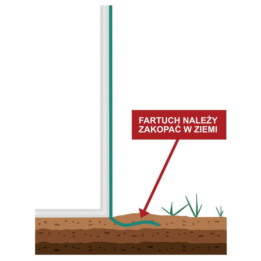 Specjalnie wydłużona zakładka (fartuch) na bocznych brzegach do dł. 20 cm szklarni umożliwia obsypanie go ziemią lub obłożenie kamieniami, dzięki czemu tunel będzie jeszcze lepiej chroniony przed mocnym wiatrem.
