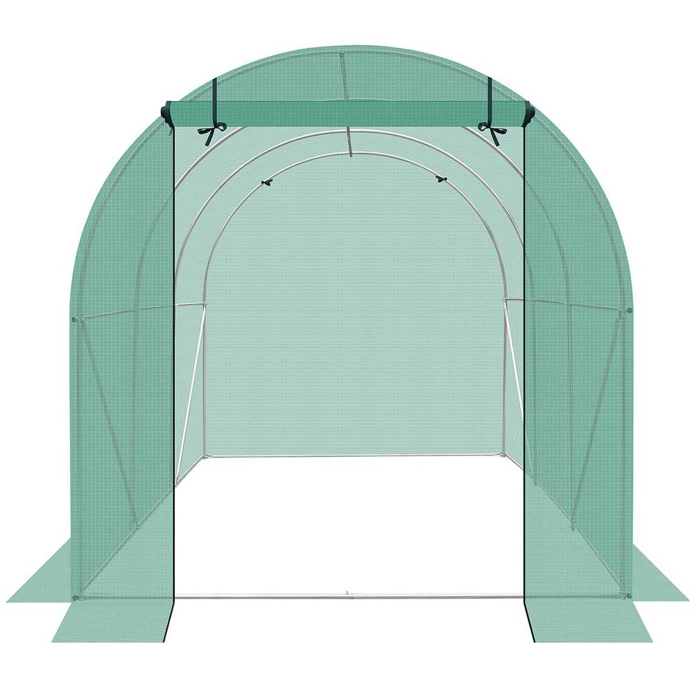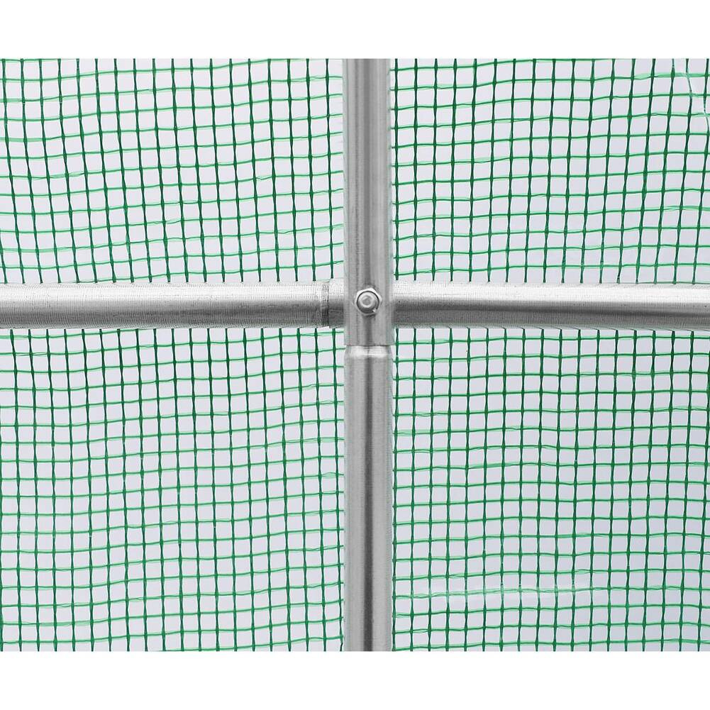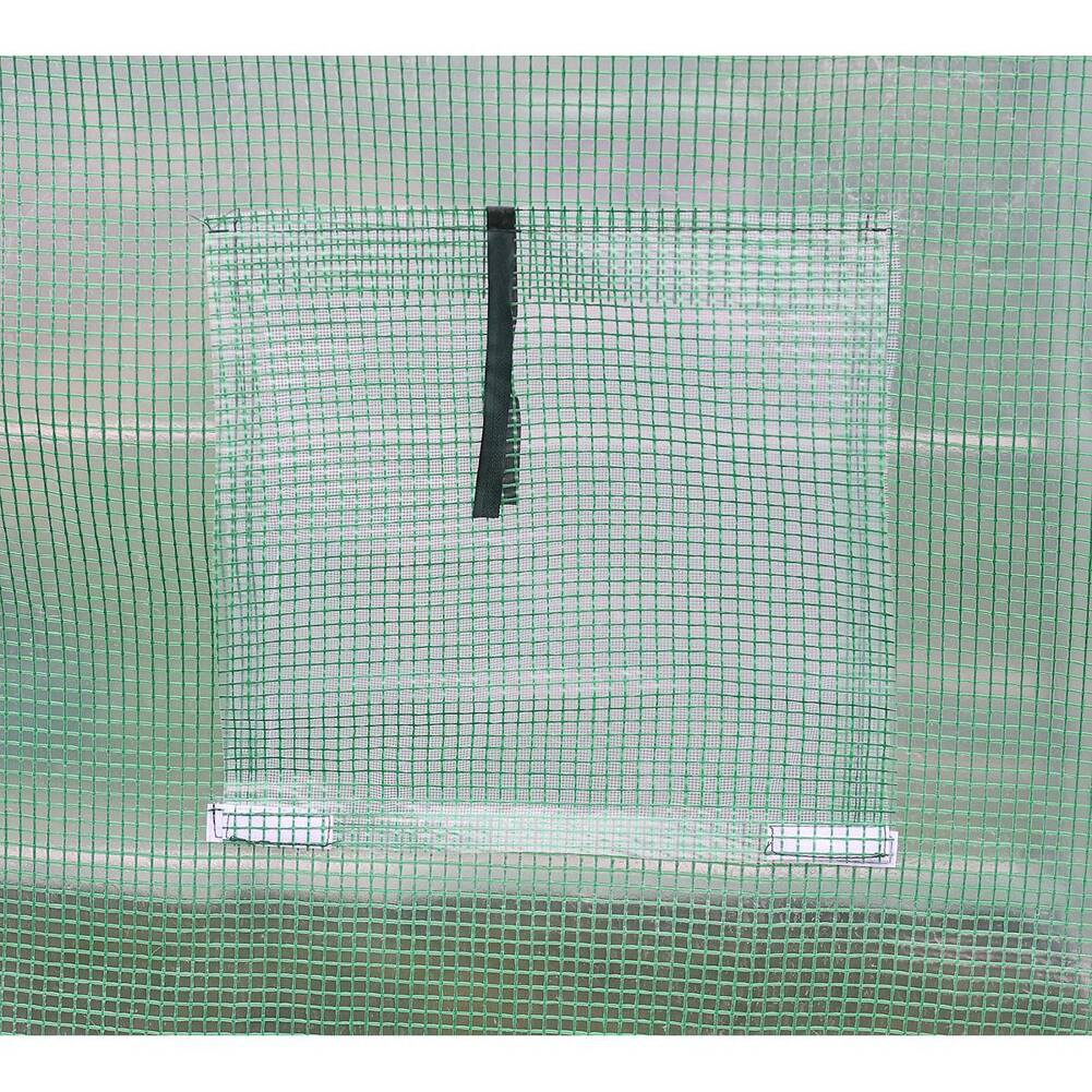 Szklarnia posiada 6 okien z moskitierami i zasłonkami z folii, które chronią przed nadmiarem wilgoci zapewniając jednocześnie optymalny przepływ powietrza i odpowiedni dostęp do światła. Posiada szerokie na 120 cm drzwi zamykane na zamek, które pozwolą wygodnie wychodzić lub wchodzić do środka.