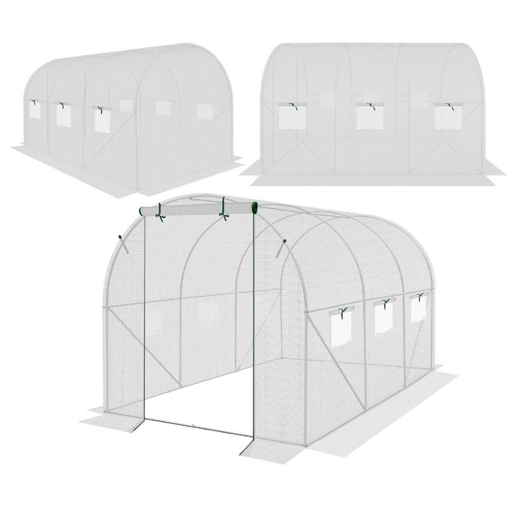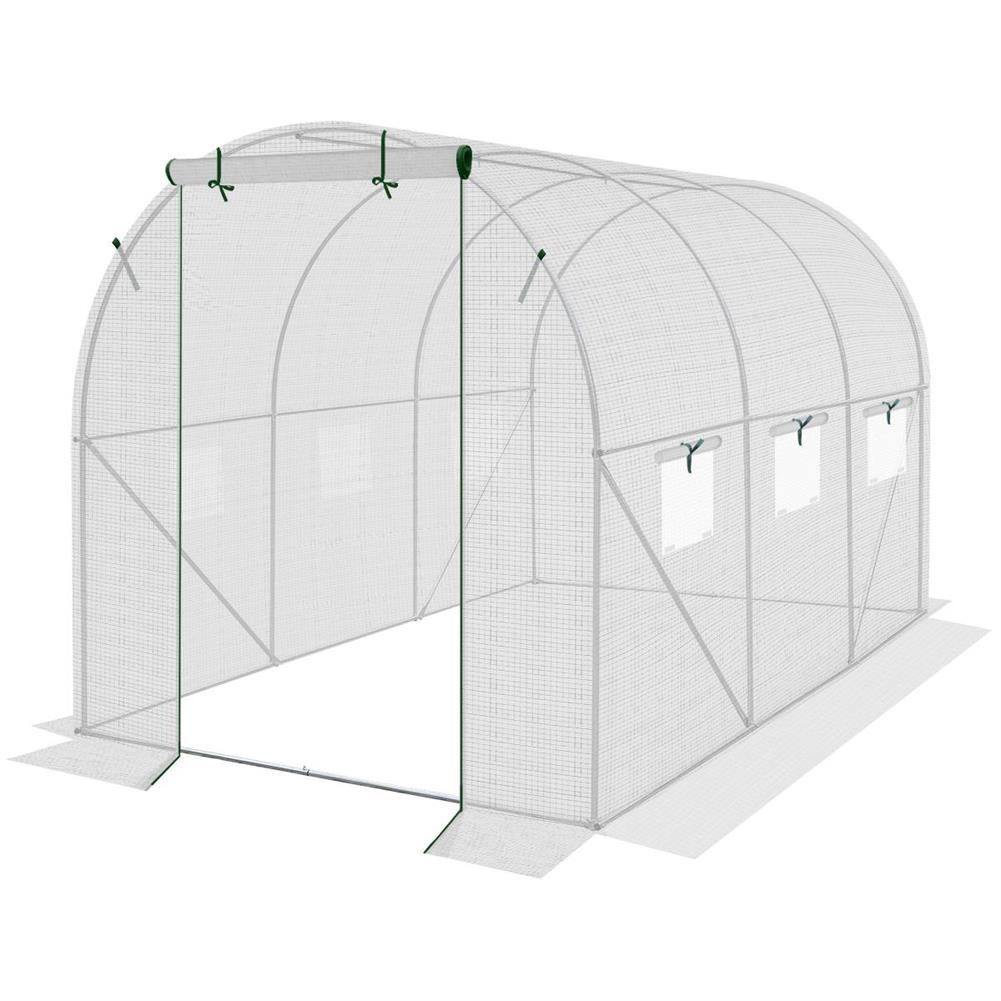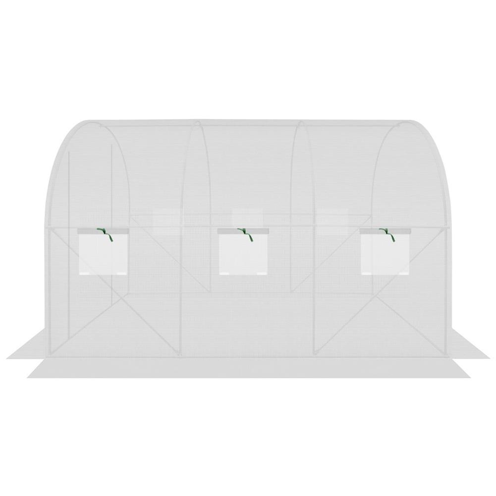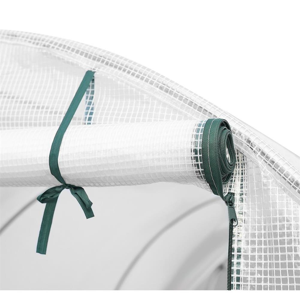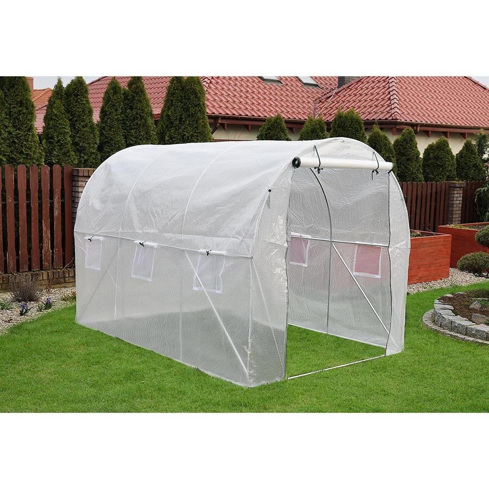 Szklarnia posiada 6 okien z moskitierami i zasłonkami z folii, które chronią przed nadmiarem wilgoci zapewniając jednocześnie optymalny przepływ powietrza i odpowiedni dostęp do światła. Posiada szerokie na 120 cm drzwi zamykane na zamek, które pozwolą wygodnie wychodzić lub wchodzić do środka.