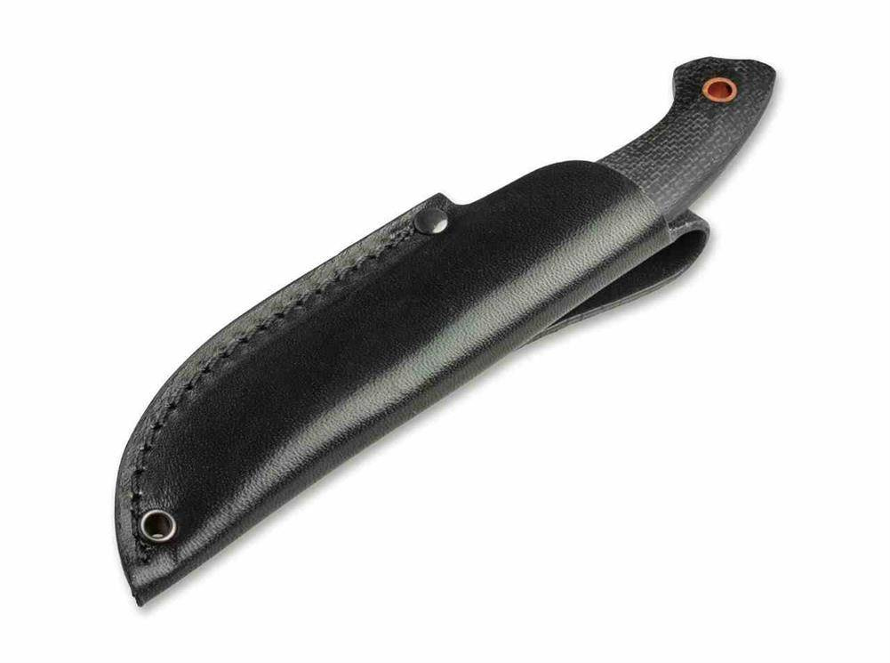 Łuski rękojeści wykonane z czarnej micarty i czarne proszkowe pokrycie ostrza nadają Nessmi Pro taktyczny wygląd, a wydrążone miedziane nity dodają kolorowego akcentu i służą również jako otwór na smycz.