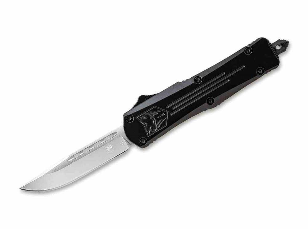 CobraTec Small FS-3 OTF Purple przekonuje ostrzem wykonanym z D2 i strukturalnym uchwytem wykonanym z aluminium.