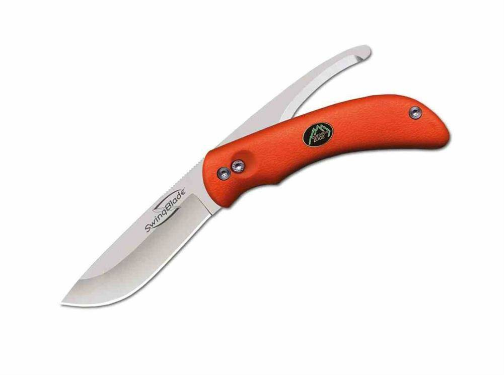 SwingBlade firmy Outdoor Edge łączy w sobie zalety stałego noża z wszechstronnością scyzoryka z wymiennym ostrzem. Po zwolnieniu blokady jednoczęściowe ostrze można obrócić o 180 °, dzięki czemu oferuje uniwersalne ostrze typu drop-point skinner lub specjalne ostrze łamane, za pomocą którego można bezpiecznie i łatwo otworzyć górną część elementu od wewnątrz na zewnątrz bez cięcia lub obcinania włosów Wnętrzności są kontuzjowane. Rękojeść Kraton zapewnia doskonałą obsługę i wysoką odporność na poślizg i jest wygodny do trzymania nawet w zimne dni. Ostrze ze stali AUS-8 zapewnia wysokie utrzymanie krawędzi. Dostarczany z wytrzymałą nylonową osłoną.