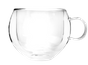 Funkcjonalna filiżanka z uchwytem serii Amo marki Vialli Design jest bestsellerem i została doceniona i ukochana przez naszych klientów. Dzięki swojemu pękatemu kształtowi i fantastycznie prezentującemu się wewnątrz filiżanki napojowi, nie tylko jest praktyczna ale cieszy oko każdego kto z niej korzysta. Produkt został wykonany ręcznie z najwyższej jakości szkła boro-krzemowego. Szkło to odporne jest na matowienie w zmywarce a także na szok termiczny. Naczynie, dzięki podwójnym ściankom nie tylko utrzymuje odpowiednią temperaturę napoju na dłużej, ale też chroni przed poparzeniem. Bez obaw możemy trzymać ją w dłoni nawet, gdy pijemy gorącą herbatę czy kawę nie trzymając za uszko. Szklanki posiadają ergonomiczny kształt, który zapobiega wyślizgnięciu się z dłoni i jest idealna do serwowania zarówno gorących jak i zimnych napojów.