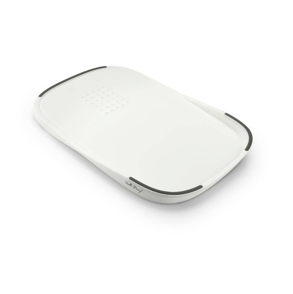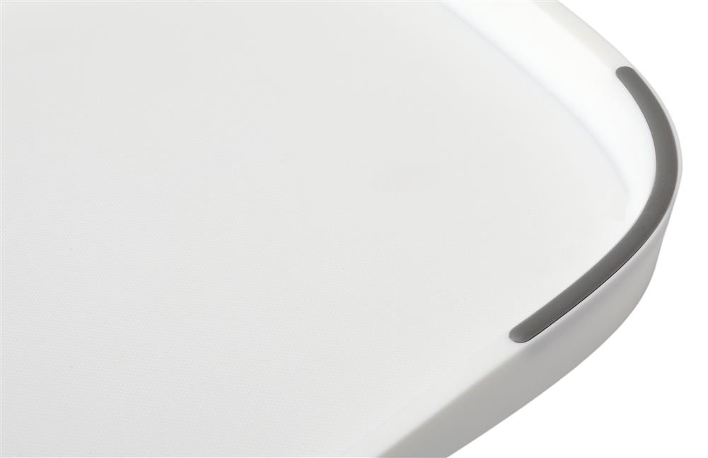 Wielofunkcyjna deska ma dobrą przyczepność do stołu lub blatu dzięki antypoślizgowej powierzchni z tworzywa sztucznego, która zapewnia bezpieczne krojenie i siekanie.