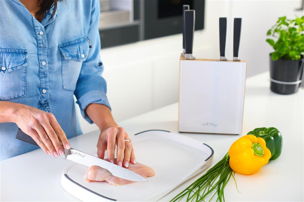 Już nigdy więcej mięso czy jajko na twardo nie będzie suwać się po powierzchni blatu, a ty uchronisz swoje palce przed skaleczeniem.