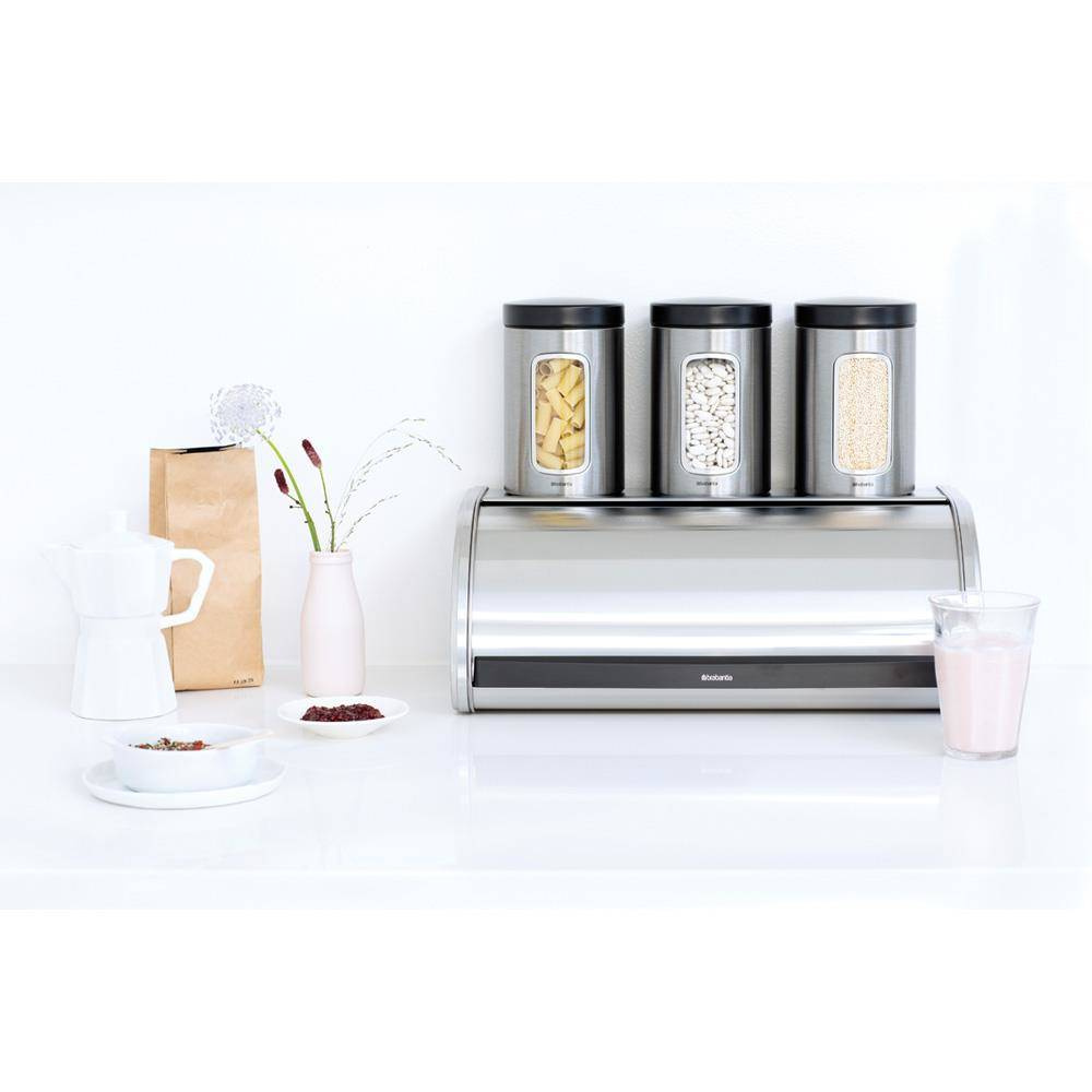 Elegancki, a przede wszystkim praktyczny pojemnik do przechowywania pieczywa marki Brabantia. Produkt został wykonany z wysokiej jakości matowej stali nierdzewnej. Dzięki chlebakowi Brabantia pieczywo na dłużej utrzyma swoją świeżość. Pokrywa chlebaka jest w kształcie bąbli, dzięki czemu może "oddychać". Pojemnik został tak zaprojektowany, że można na nim ustawić różnego rodzaju pojemniki np do przechowywania żywności. Chlebak doskonale prezentuje się w nowoczesnych wnętrzach.