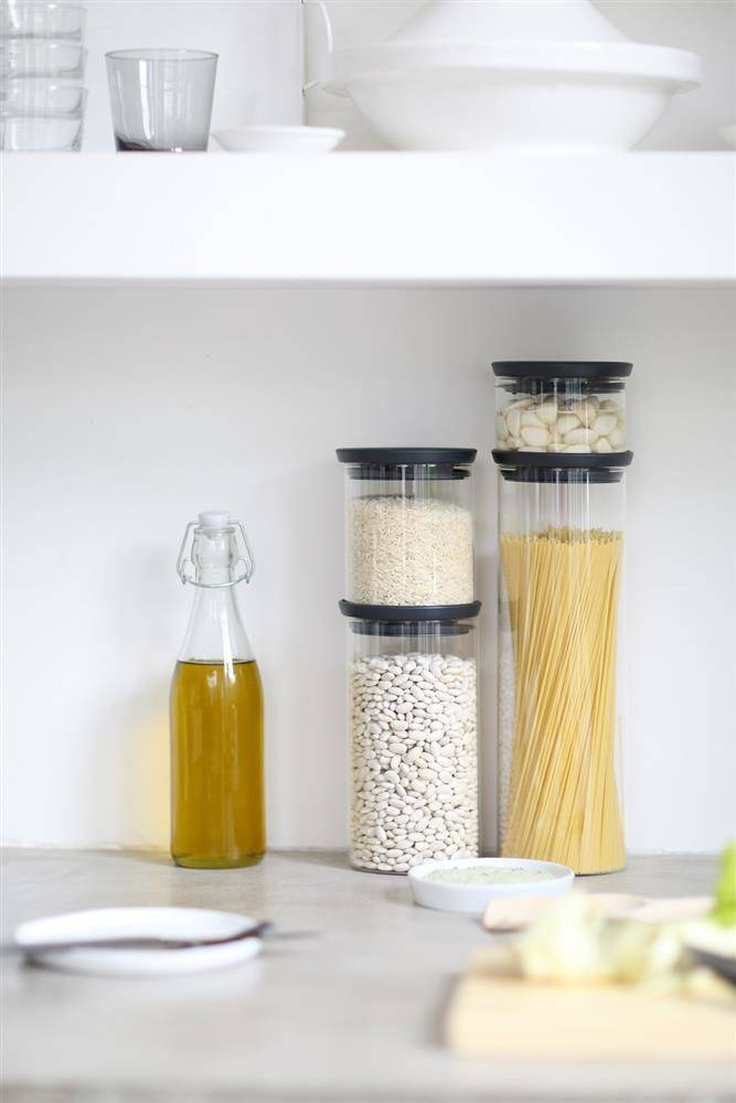 Poręczny i funkcjonalny pojemnik holenderskiej marki Brabantia wykonany jest ze szkła boro-krzemowego odpornego na zarysowania, szok termiczny i matowienie.