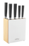 Nowoczesny i funkcjonalny zestaw 5 noży w drewnianym stojaku z serii FINO marki Vialli Design w kolorze białym.