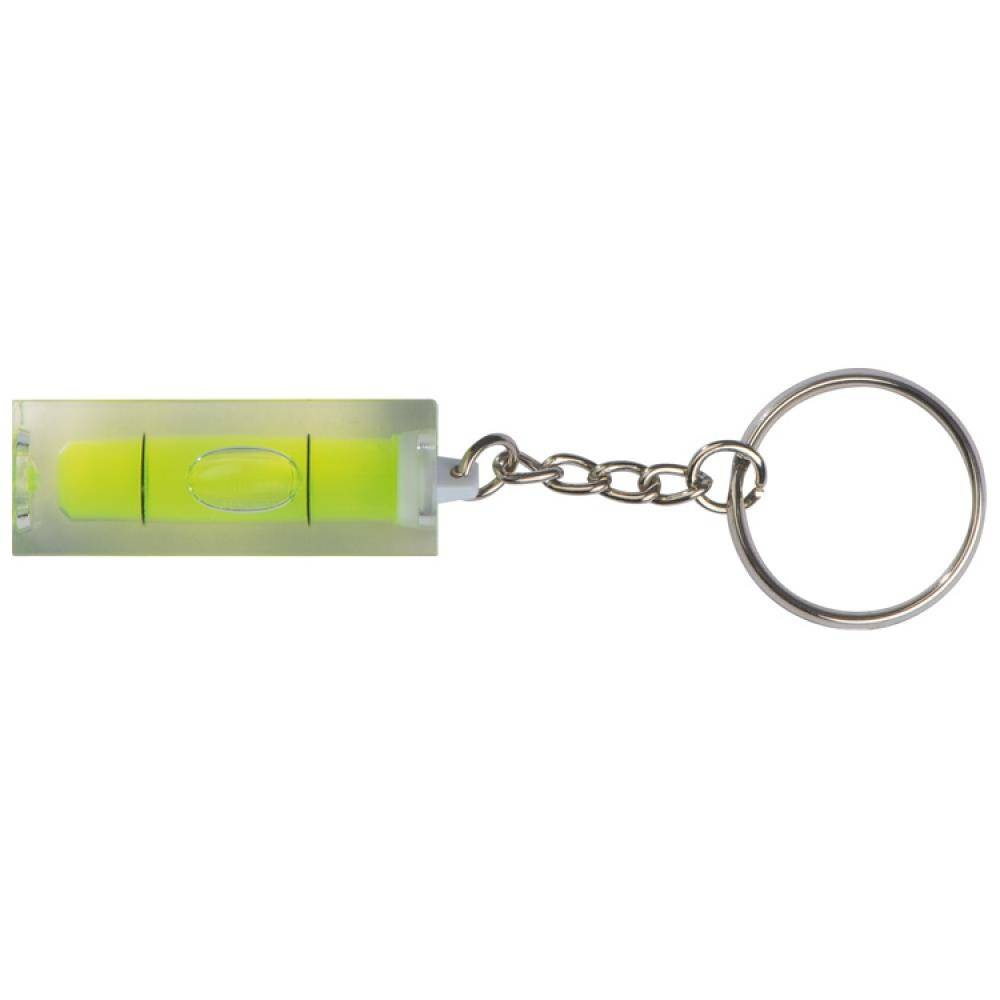 Metalowy brelok do kluczy z plastikową poziomicą.