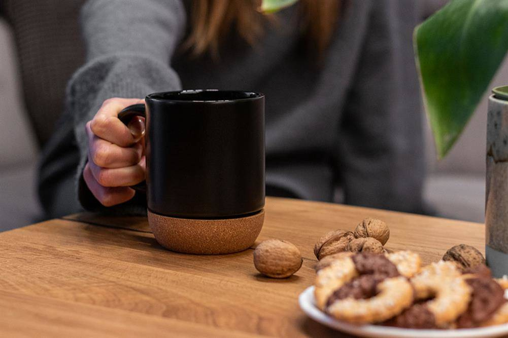 Kubek ceramiczny o pojemności 350 ml z dolną częścią wykonaną z korka.