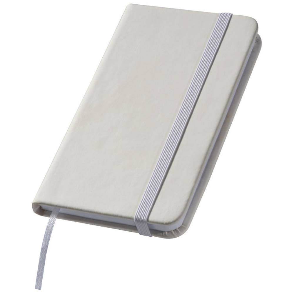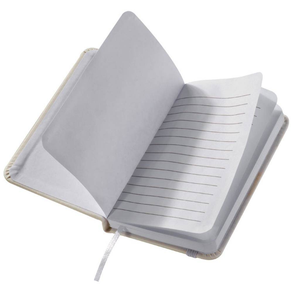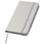 Posiada tasiemkową zakładkę oraz gumkę umożliwiającą zamknięcie.