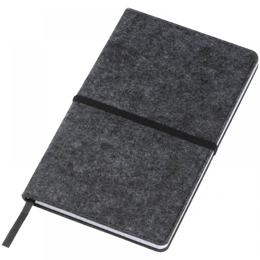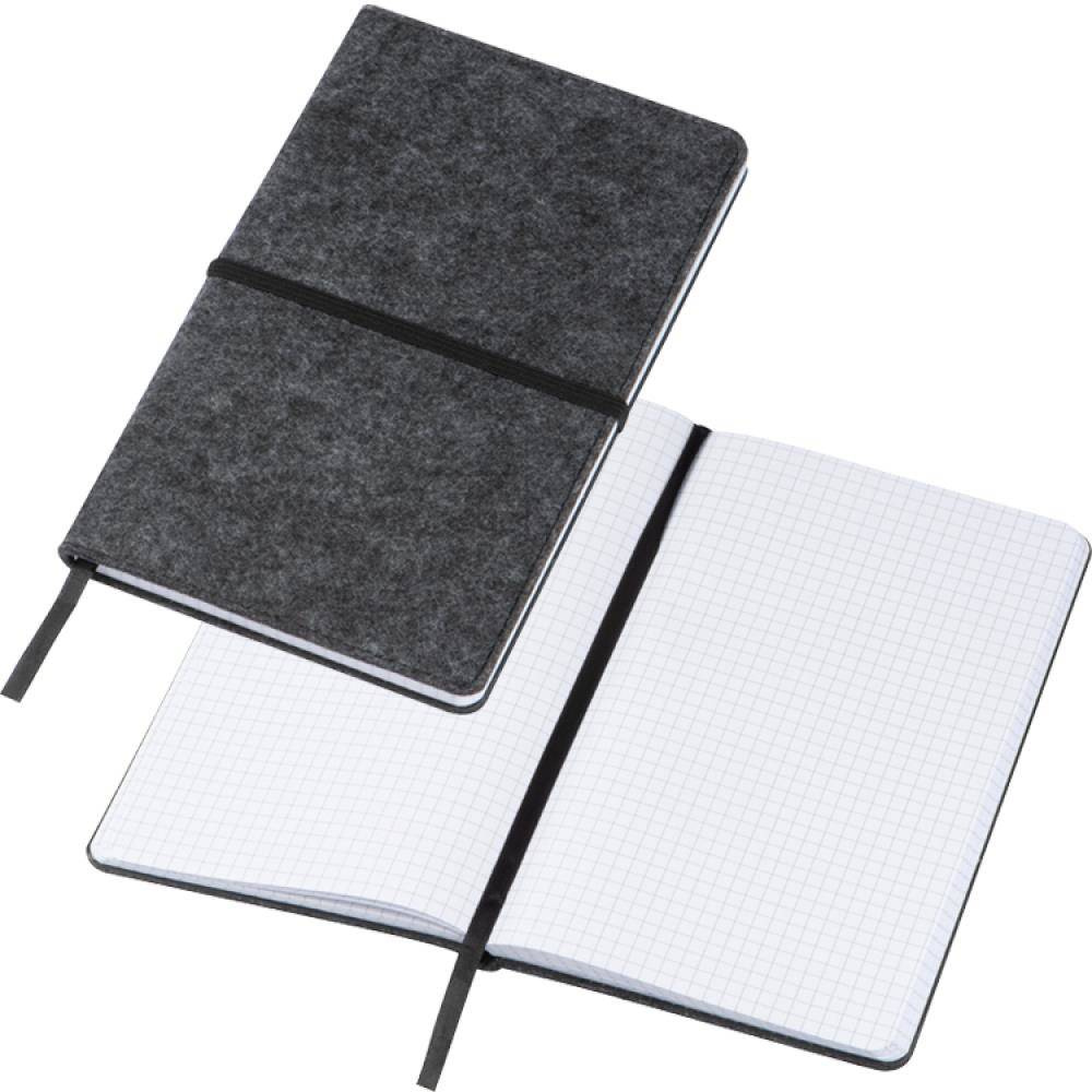 Notatnik A5 z filcową okładką, zakładką, zapięciem na gumkę i 192 stronami w kratkę.