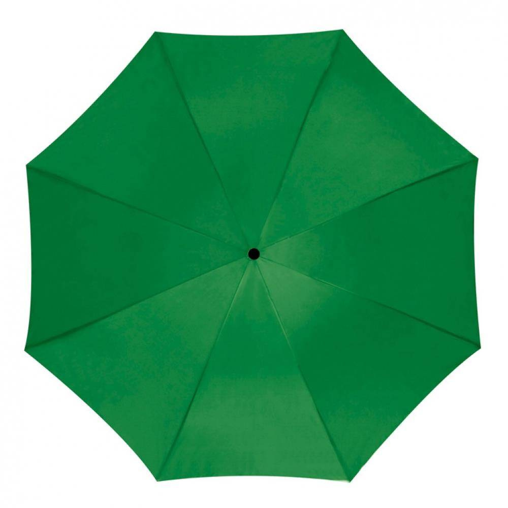Automatyczny parasol z poliestru z wygiętą, plastikową rączką.