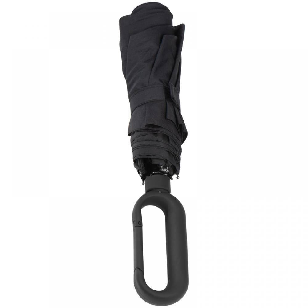 Parasol manualny z tkaniny pongee 190T ze specjalnym gumowanym uchwytem w kształcie karabińczyka.