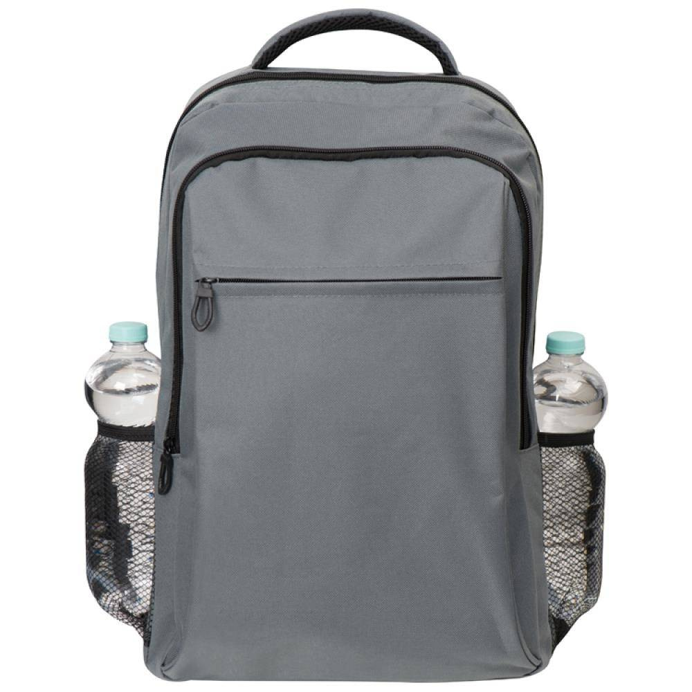 Plecak wykonany z poliestru 600D i 300D, zapinany na zamek, z kieszeniami bocznymi z siatki.