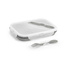 W górnej części wieczka znajduje się miejsce na przechowywanie dołączonego do zestawu widelca i noża (2 w 1).