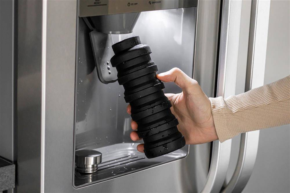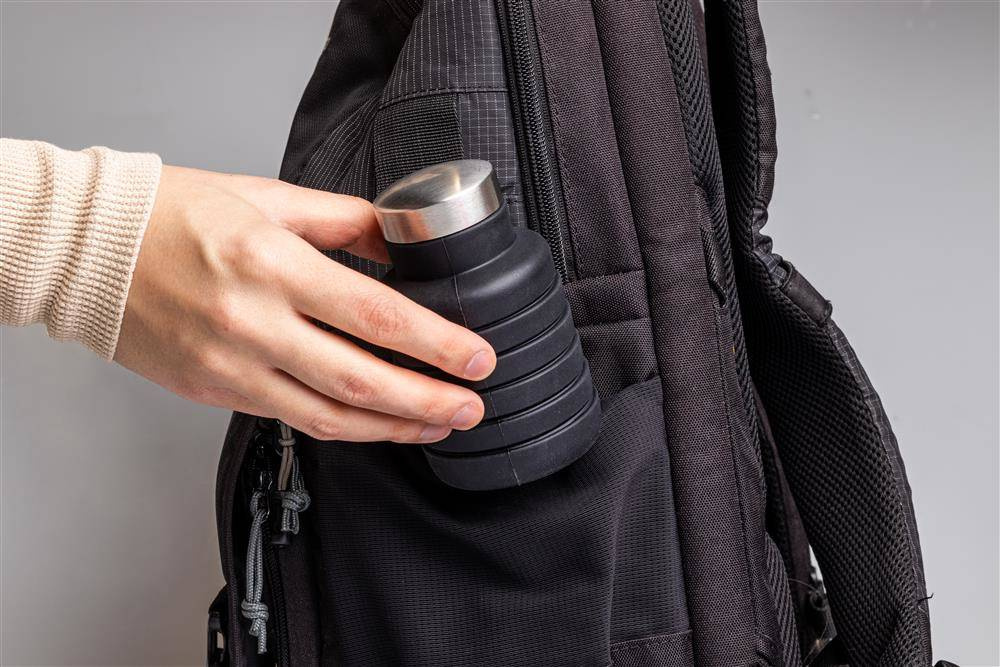 Silikonowa butelka, o pojemności 500 ml, którą po opróżnieniu zawartości można złożyć w kompaktową harmonijkę.