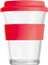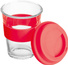 Kubek o pojemności 300ml, wykonany ze szkła, z silikonową pokrywką i silikonowym pierścieniem-nakładką, dzięki której nie ma ryzyka poparzenia dłoni.