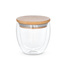 Kubek podróżny ze szkła borokrzemowego, o podwójnych ściankach z bambusową zakrętką. Kubek o pojemności do 250 ml, idealny do zimnych lub gorących napojów, z pokrywką z silikonową izolacją, która ułatwia transport kubka bez rozpryskiwania. Po zdjęciu zakrętki można go używać w kuchence mikrofalowej i zmywarce. Dostarczany w pudełku z papieru kraftowego.ø89 x 91 mm
