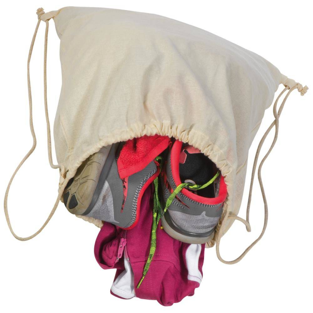 Worek sportowy bawełniany w naturalnym kolorze z zaciąganymi sznurkami do zamykania.