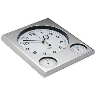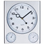 Zegar ścienny z higrometrem i termometrem, wykonany z plastiku i akrylu. Produkt nie zawiera baterii.