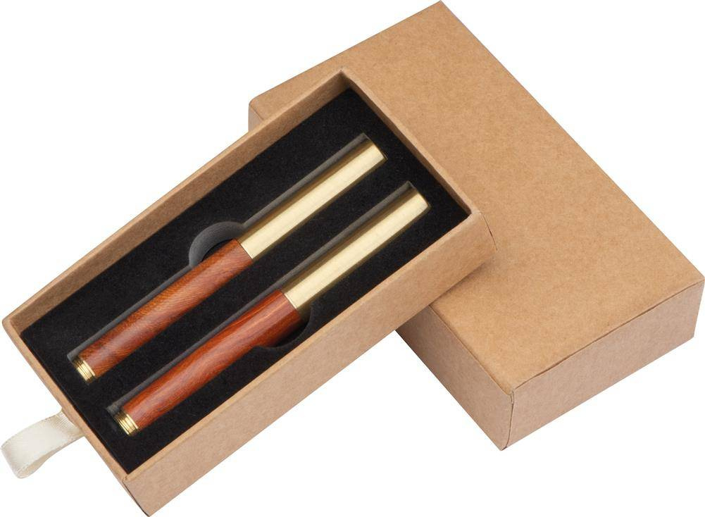 Zestaw w rozmiarze mini, wykonany z drewna i mosiądzu.
