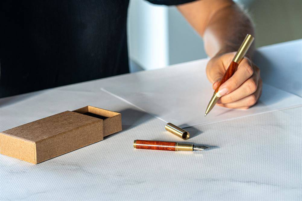 W kartonowym opakowaniu prezentowym znajdziemy pióro wieczne oraz pióro kulkowe.