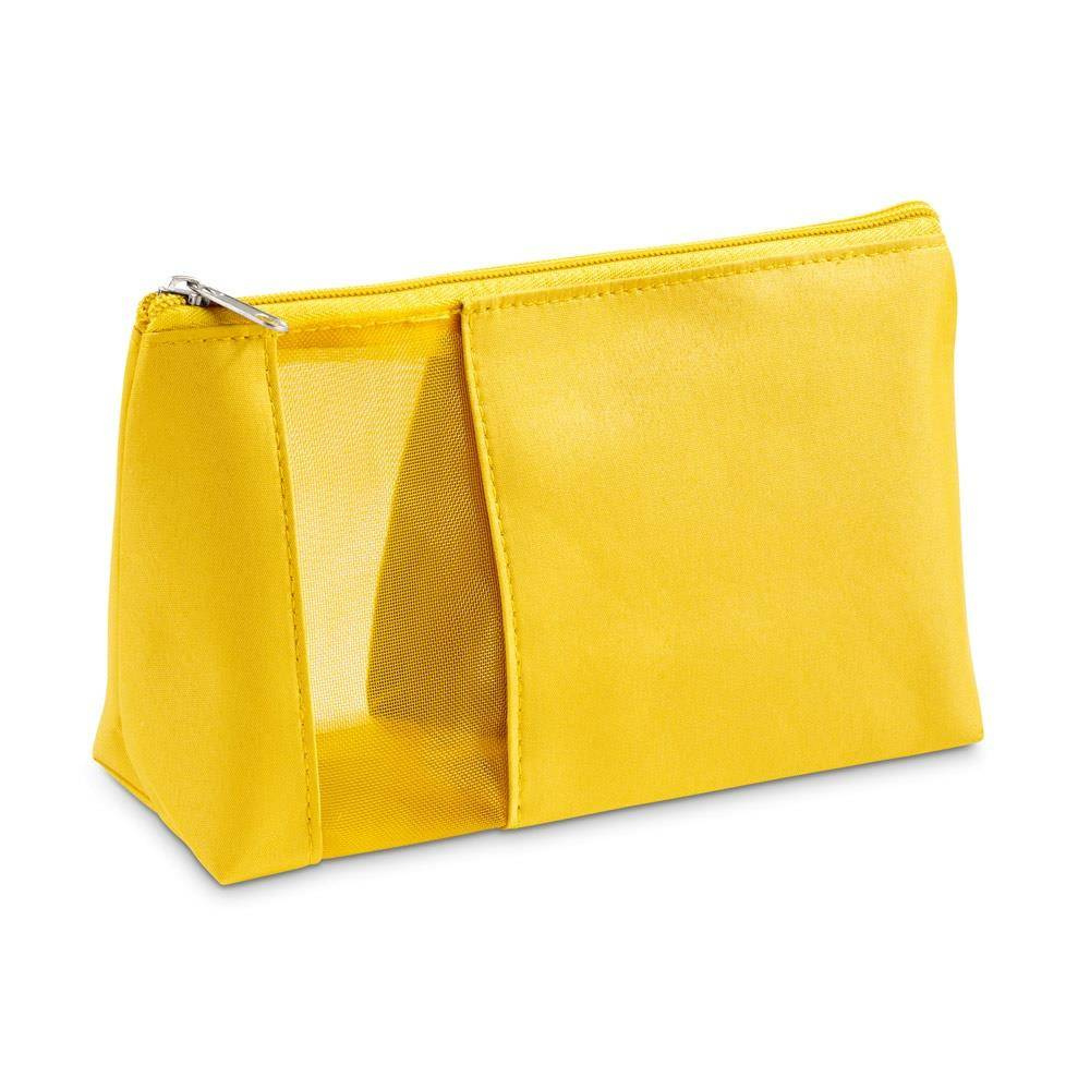 Kosmetyczka z mikrofibry i siateczki zapinana na zamek.