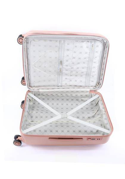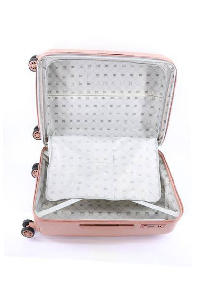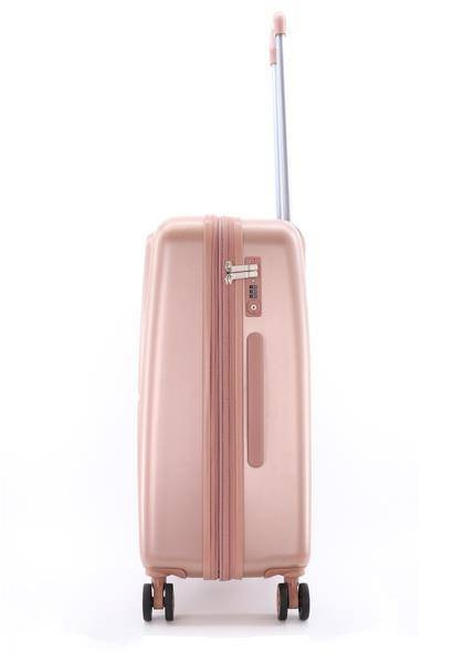 Nowoczesna walizka klasy premium z serii Chic marki ELLE cechuje się wyjątkowym designem i bardzo wysoką jakością materiałów z których została wykonana - wytrzymała i odporna na uszkodzenia lekka konstrukcja z ABS-u. Posiada cztery podwójne wysokiej jakości kółka obracane o 360 stopni, stelaż aluminiowy z regulowaną wysokością(z przyciskiem blokującym) oraz wpuszczany zamek szyfrowy TSA dzięki czemu jest świetnym rozwiązaniem dla osób, które dużo czasu spędzają w podróży i cenią sobie wygodę oraz bezpieczeństwo swojego bagażu. Wnętrze walizki posiada pasy zabezpieczające, które zapobiegają przemieszczaniu się zawartości bagażu. Unikalny stylowy wygląd od marki ELLE