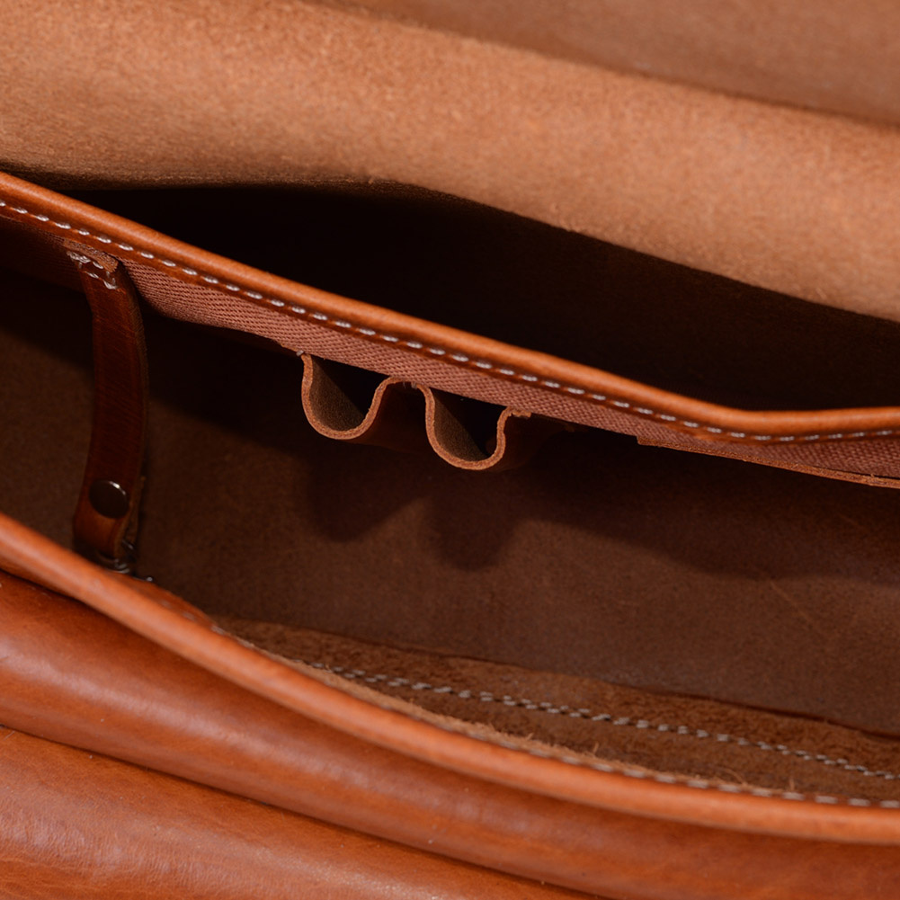 - wewnątrz głównej komory, przegrody na telefon, karty, klamra do kluczy i kieszenią ogólną