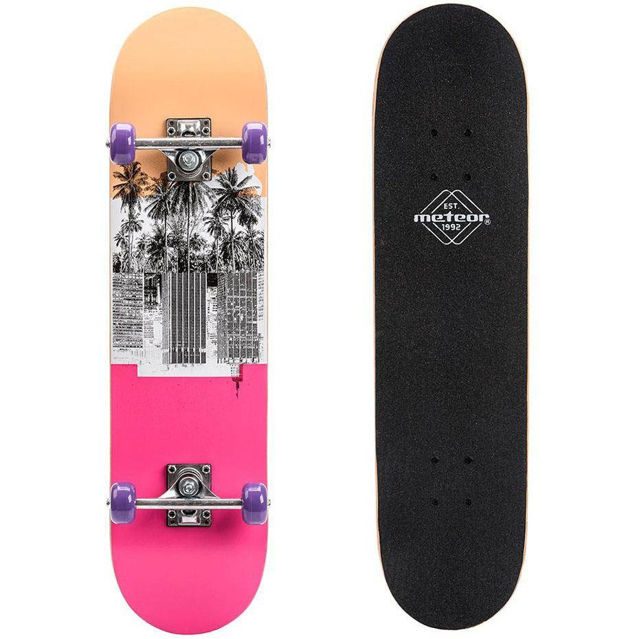 Deskorolka Meteor drewniana California różowo-pomarańczowo-czarna 22623