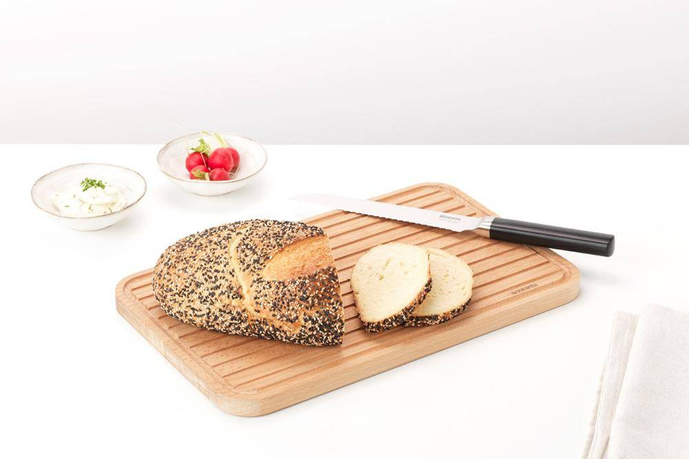 Deska posiada specjalne rowki, do których wpadają okruchy podczas krojenia pieczywa.