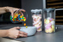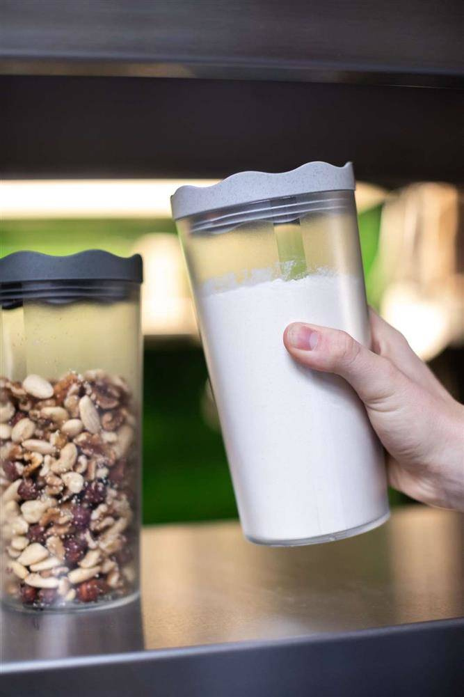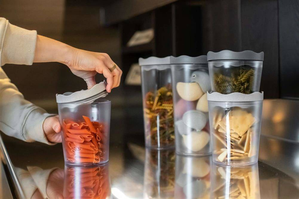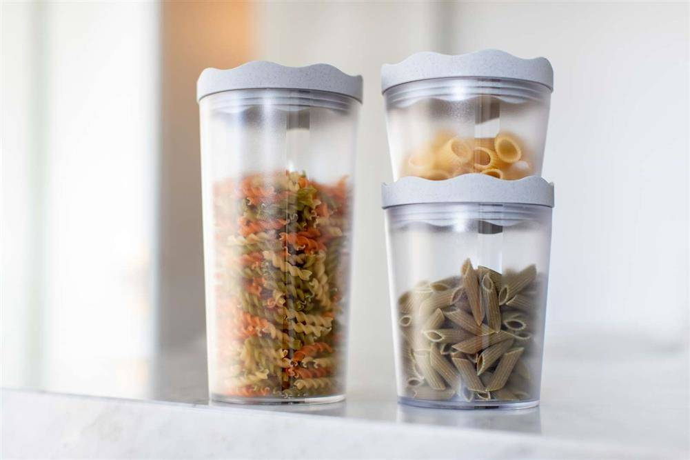 Możliwość piętrowego ułożenia pomaga zaoszczędzić i zagospodarować miejsce w szafce kuchennej czy też lodówce.